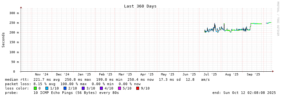 10 > 210.213.131.106.static.pldt.net (210.213.131.106) [AS9299] 250.309ms 250.146ms 250.272ms