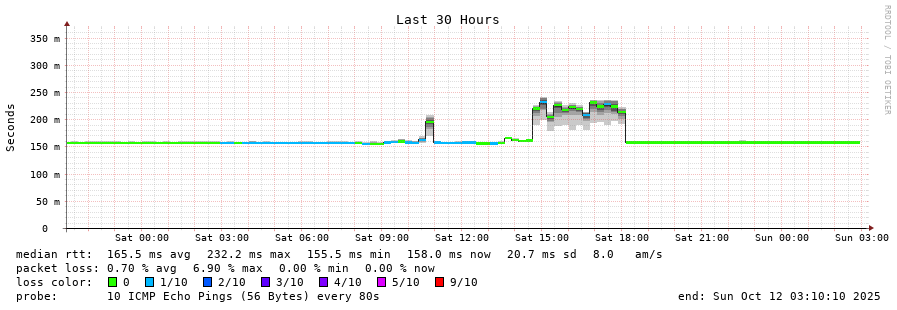 traceroute to 122.160.40.1 (122.160.40.1), 30 hops max, 60 byte packets - Generated at 2025-10-12 00:30:01