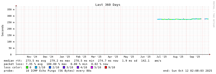 14 > 100ge0-35.core2.akl1.he.net (184.104.192.115) [AS6939] 274.052ms 274.100ms 274.238ms
