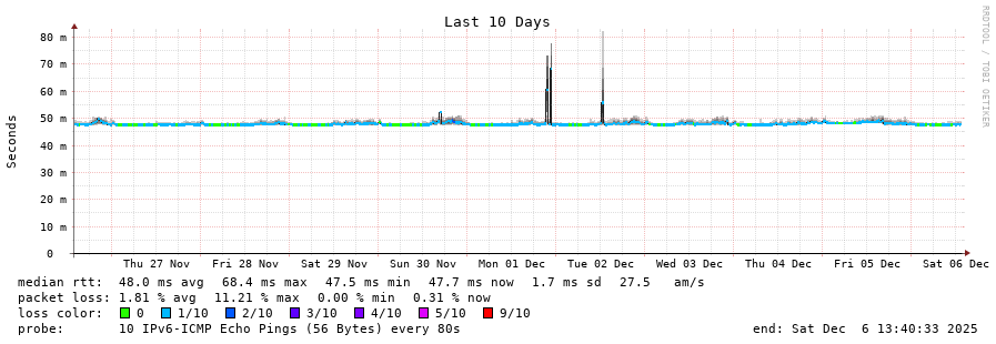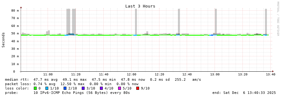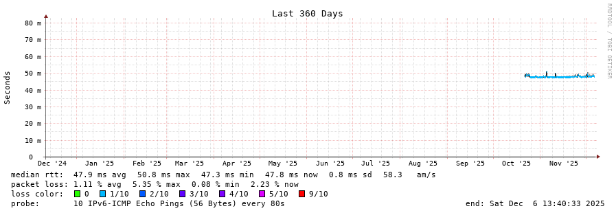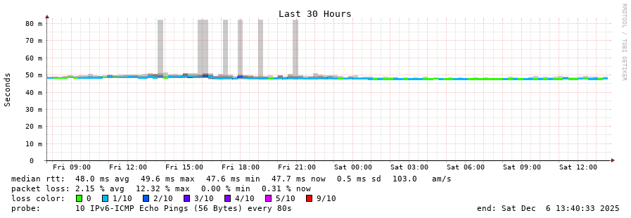 traceroute to 2c0f:5400:2:15::1 (2c0f:5400:2:15::1), 30 hops max, 80 byte packets - Generated at 2025-12-06 13:30:01