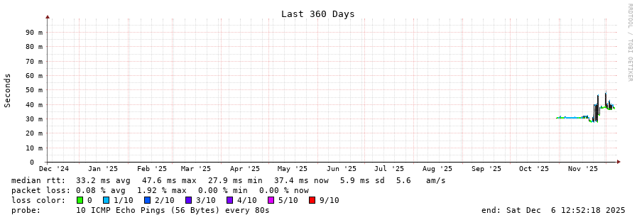 traceroute to 85.18.87.69 (85.18.87.69), 30 hops max, 60 byte packets - Generated at 2025-12-06 12:45:01