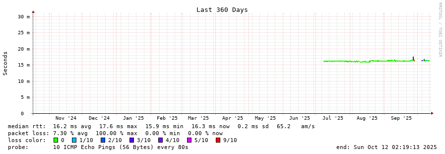 traceroute to 96.17.193.1 (96.17.193.1), 30 hops max, 60 byte packets - Generated at 2025-10-12 00:30:01
