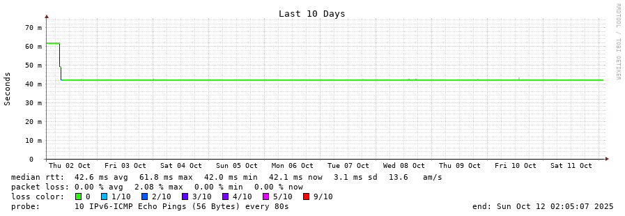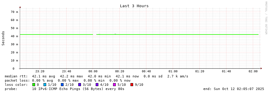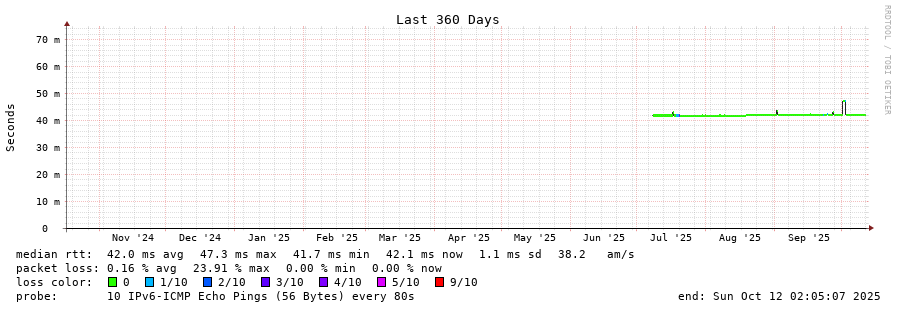 traceroute to 2a05:9f04:16:10::65 (2a05:9f04:16:10::65), 30 hops max, 80 byte packets - Generated at 2025-10-12 00:30:01