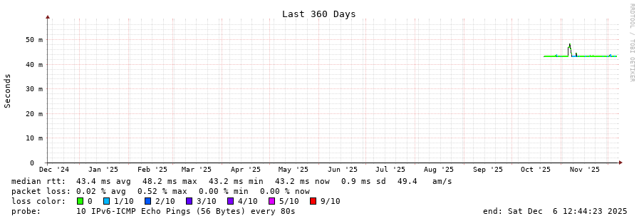 traceroute to 2001:b68:d:0:ee08:6bff:fe73:2da0 (2001:b68:d:0:ee08:6bff:fe73:2da0), 30 hops max, 80 byte packets - Generated at 2025-12-06 12:30:01