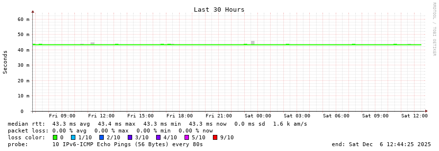 traceroute to 2001:b68:d::28 (2001:b68:d::28), 30 hops max, 80 byte packets - Generated at 2025-12-06 12:30:01