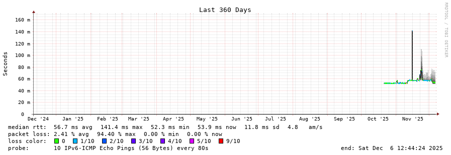 traceroute to 2a0c:9a40:8610:e3f::1 (2a0c:9a40:8610:e3f::1), 30 hops max, 80 byte packets - Generated at 2025-12-06 12:30:01