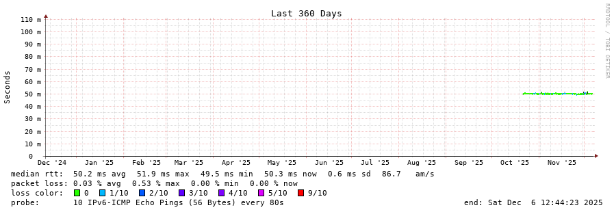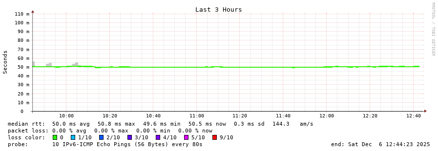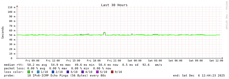 traceroute to 2a0b:2f00:0:234::151 (2a0b:2f00:0:234::151), 30 hops max, 80 byte packets - Generated at 2025-12-06 12:30:01