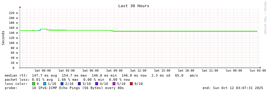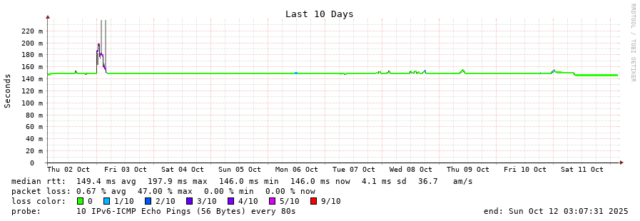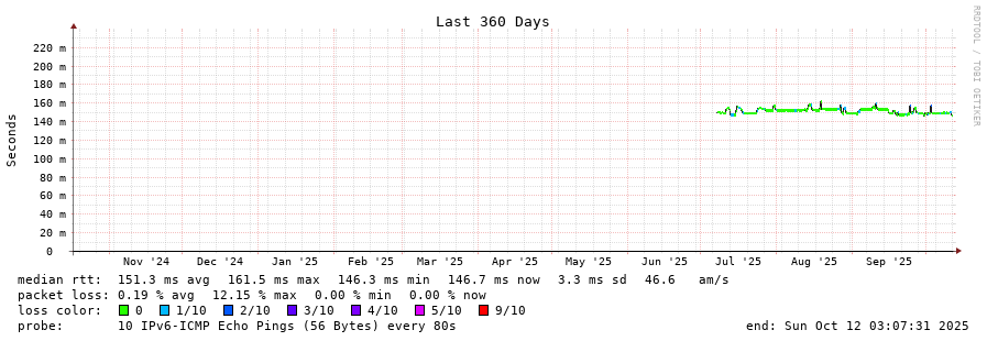 traceroute to 2604:2dc0:202:200::1f9 (2604:2dc0:202:200::1f9), 30 hops max, 80 byte packets - Generated at 2025-10-12 03:00:01
