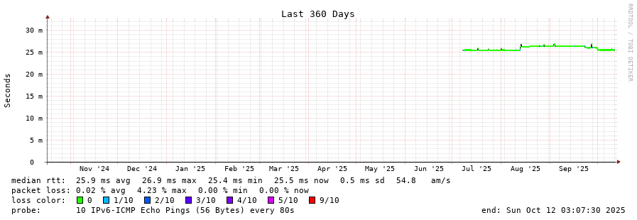 traceroute to 2001:41d0:404:100::3a1 (2001:41d0:404:100::3a1), 30 hops max, 80 byte packets - Generated at 2025-10-12 03:00:01