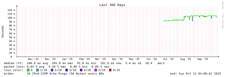 traceroute to 2607:5300:300:1f00:: (2607:5300:300:1f00::), 30 hops max, 80 byte packets - Generated at 2025-10-12 03:00:01