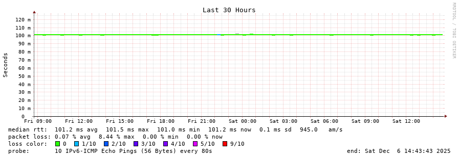 16 > 2604:2dc0:30c::2:0:4e (2604:2dc0:30c::2:0:4e) [AS16276] 101.322ms 101.352ms 101.367ms