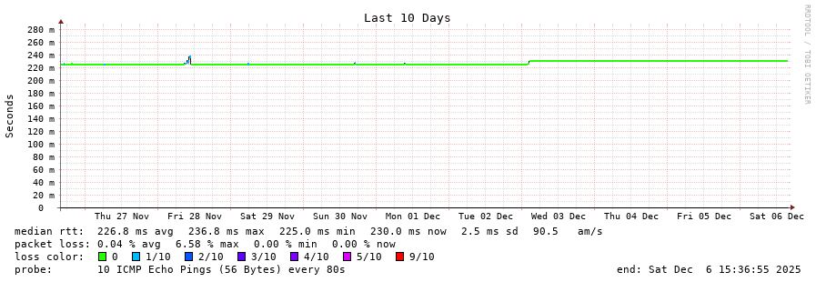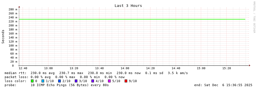 7 > 185.70.203.99 (185.70.203.99) [AS6762] 233.737ms 233.715ms 233.775ms