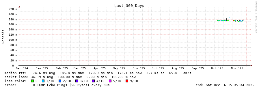 8 > 213.144.185.45 (213.144.185.45) [AS6762] 168.105ms 167.819ms 167.844ms