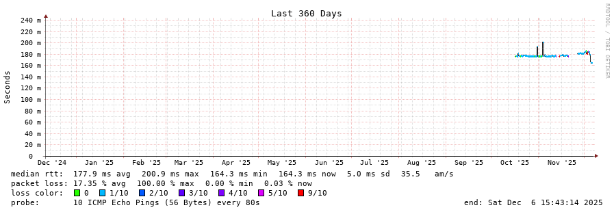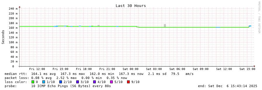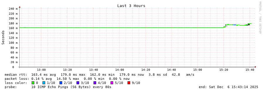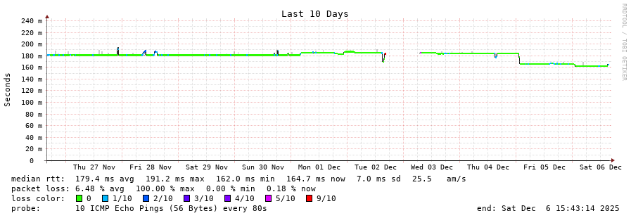 10 > 213.144.185.45 (213.144.185.45) [AS6762] 167.771ms 167.905ms 167.850ms