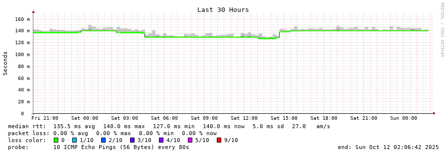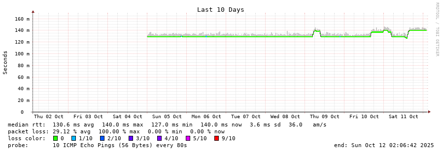 13 > 213.140.35.112 (213.140.35.112) [AS12956] 128.488ms 128.510ms 128.505ms