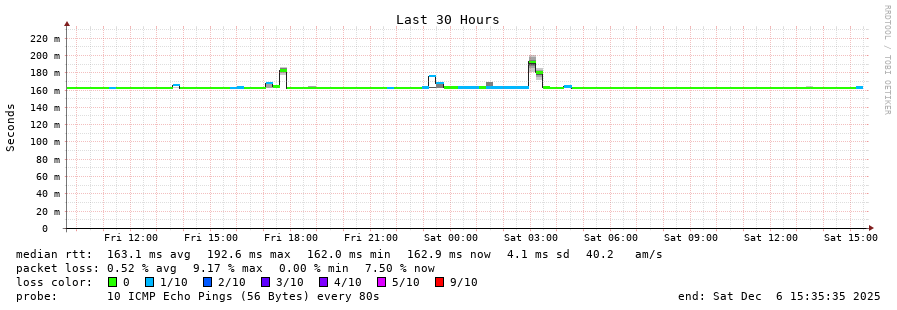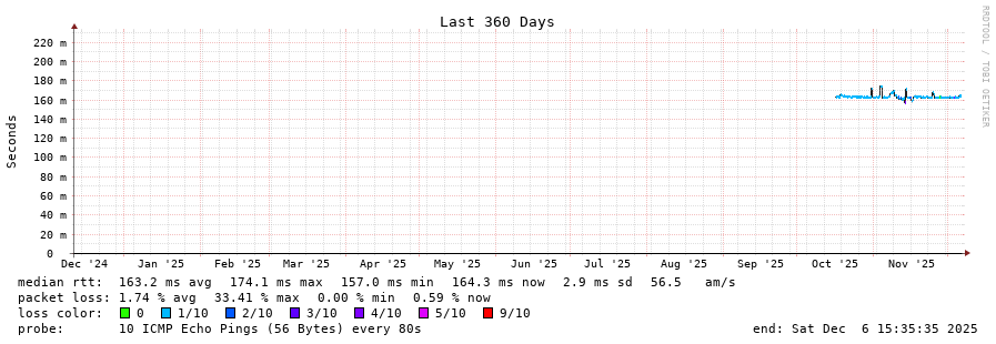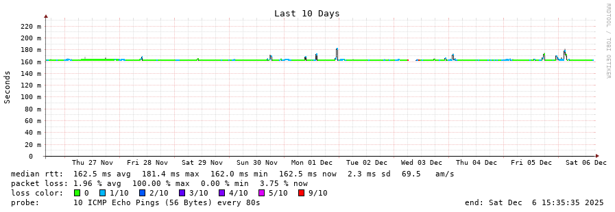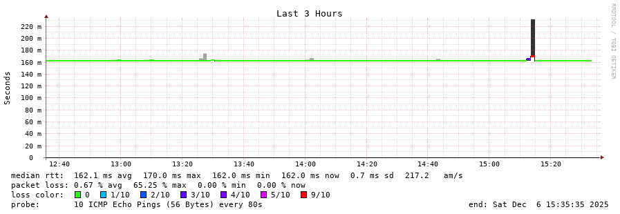 12 > 181.225.81.174 (181.225.81.174) [AS263210] 162.442ms 162.359ms 162.507ms