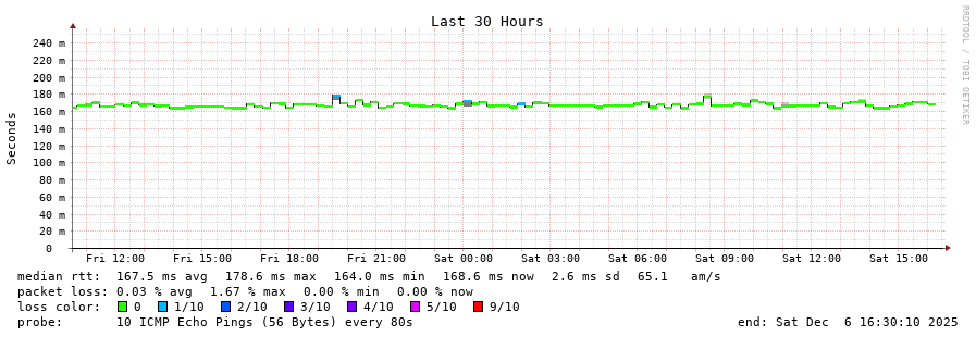 traceroute to 130.250.228.10 (130.250.228.10), 30 hops max, 60 byte packets - Generated at 2025-12-06 16:15:02