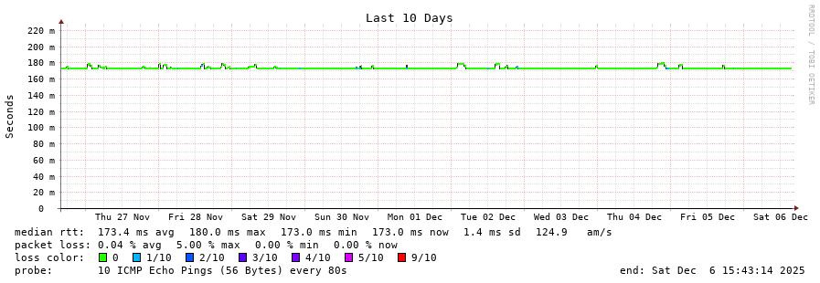 13 > 199.100.8.58 (199.100.8.58) [AS174] 172.695ms 172.736ms 172.518ms