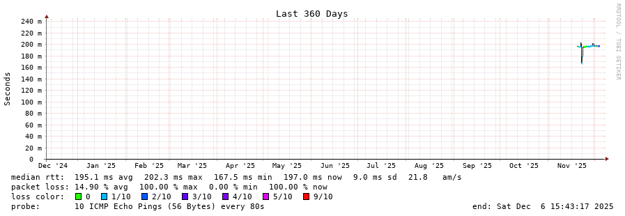 traceroute to 200.95.176.148 (200.95.176.148), 30 hops max, 60 byte packets - Generated at 2025-12-06 15:30:01