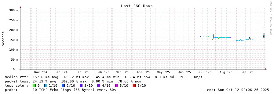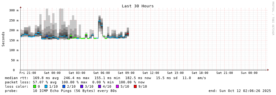 traceroute to 184.101.95.158 (184.101.95.158), 30 hops max, 60 byte packets - Generated at 2025-10-12 00:30:01
