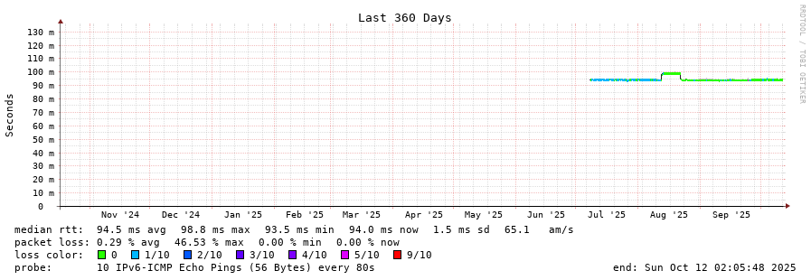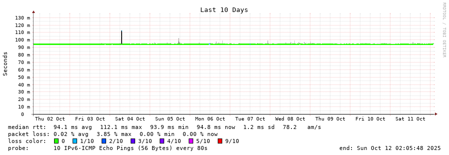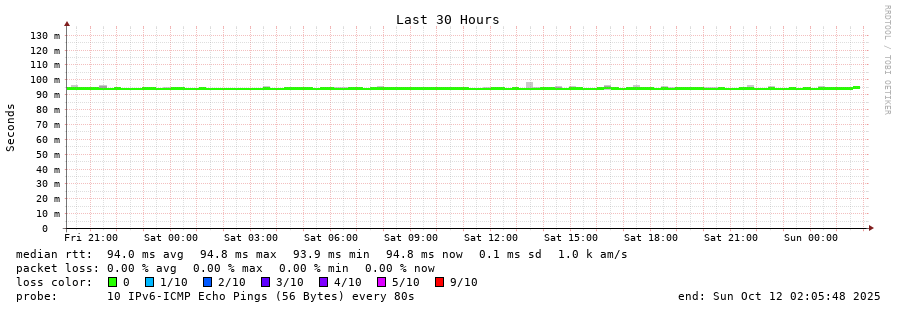 traceroute to 2602:feda:b8e:10::1 (2602:feda:b8e:10::1), 30 hops max, 80 byte packets - Generated at 2025-10-12 00:30:01