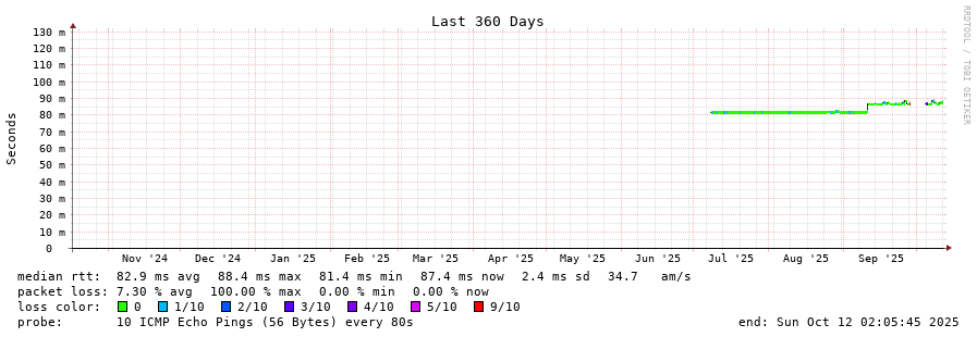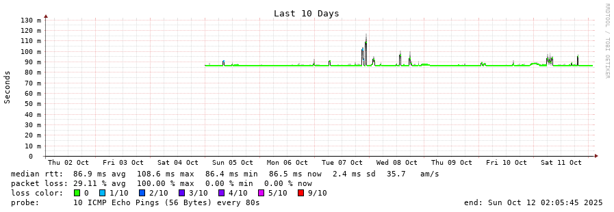 14 > 67.71.211.52 (67.71.211.52) [AS577] 86.550ms 86.479ms 86.406ms